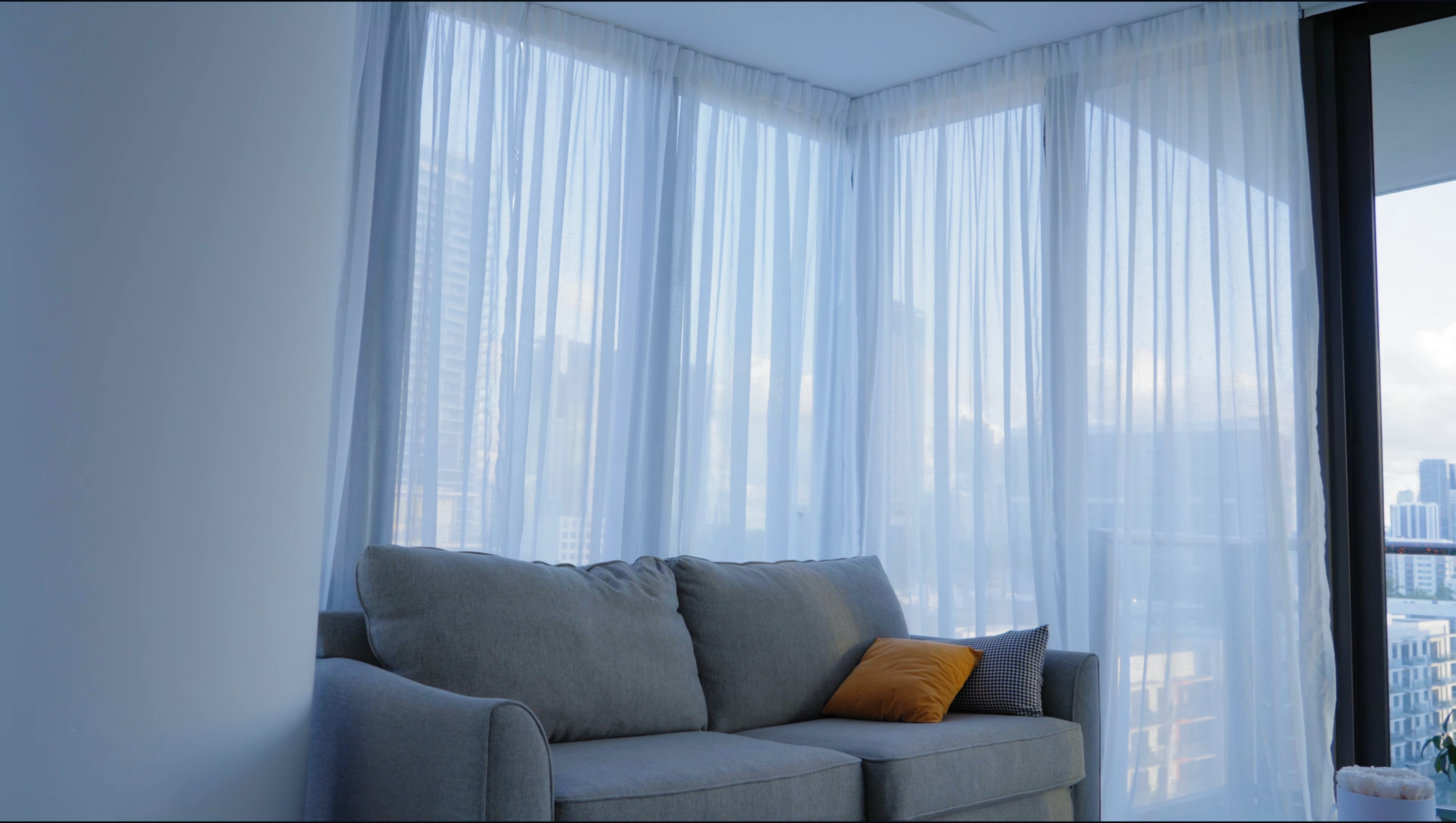 Self-adhesive sheer panels for soft light, privacy, and a clean modern look. No rods. No drilling. No hassle.